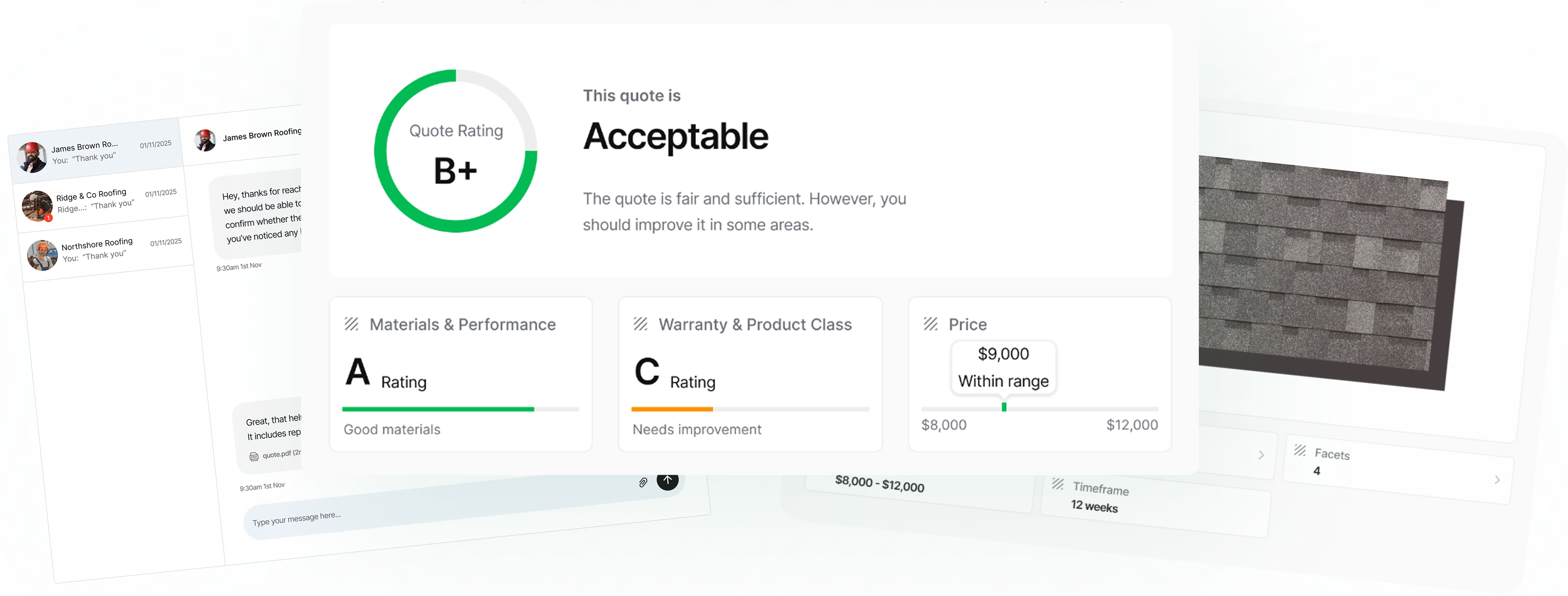Already received a quote from a contractor? We can check it against thousands of real roof replacement projects to make sure you're getting a fair deal.